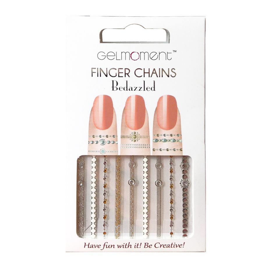 Why end the fun at your nails? Extend your creativity onto your fingers with the help of GelMoment Finger Chains. These self-adhesive "rings" draw the eye toward your beautiful GelMoment manicure. The cute stick-on finger decals can also be used to create a toe ring! Simply apply to the skin around your fingers or toes and enjoy! No glue required.